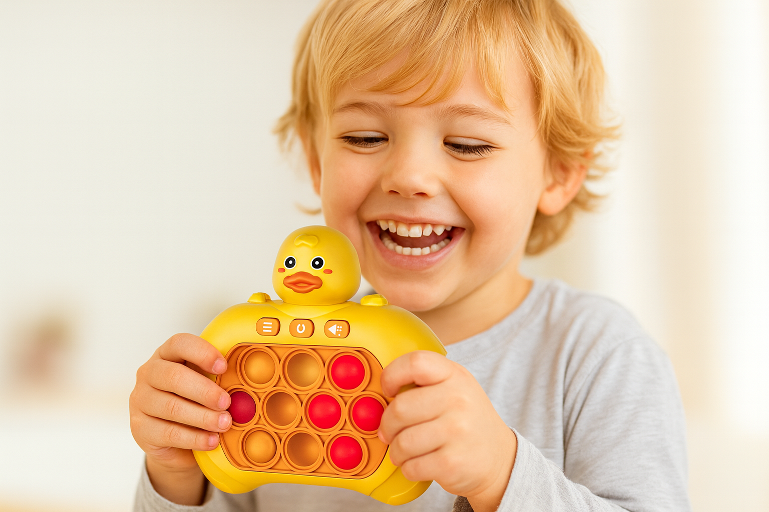 Konsol Pop-It™, klasik pop-it eğlencesini sevimli karakter tasarımları ve farklı oyun modlarıyla birleştirir. Renkli baloncuk yapısı, sesli–ışıklı geri bildirimler ve etkileşimli tuşları sayesinde çocukların el–göz koordinasyonunu ve zihinsel gelişimini destekler.